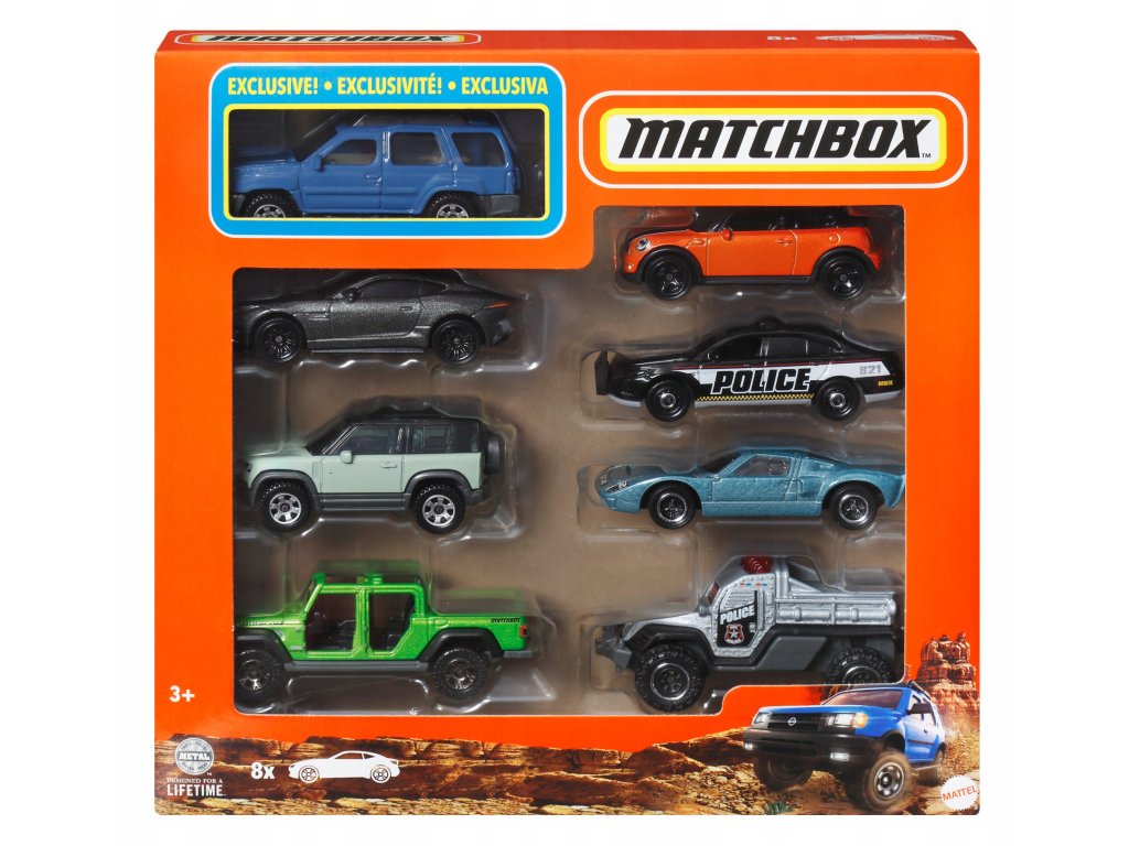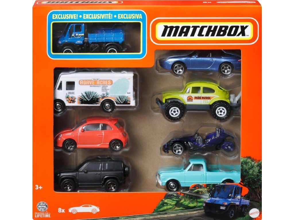Prožijte realistická dobrodružství s balením 8 vozidel Matchbox™. Každé auto nebo truck v měřítku 1:64 je inspirováno skutečnými vozy, má detailní provedení a kvalitní zpracování, které ocení děti i sběratelé.