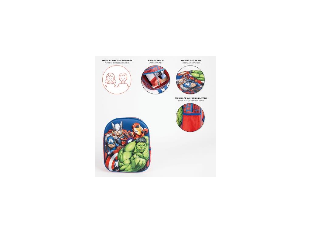 Tento dětský 3D batoh s motivem Avengers je skvělým pomocníkem pro školu i volný čas. Pevná konstrukce a pohodlné nastavitelné popruhy zajišťují příjemné nošení po celý den. Materiál: 67%POLYESTER, 33%EVA. Rozměry: 26.0 × 32.0 × 10.0 CM cm. Hmotnost: 0,22 kg. Vhodné pro děti předškolního a školního věku.