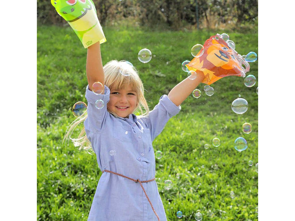 Bubliny, jenom samé bubliny. Vyndejte bublifuk, nasaďte si zvířátkovou rukavici na ruku a bublinková zábava může začít.