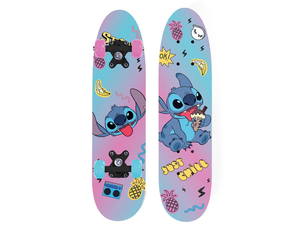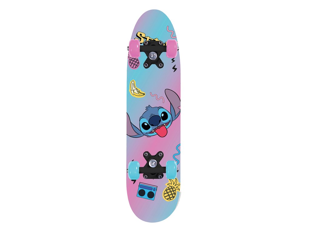 Dřevěný skateboard s motivem Stitch je ideální pro jízdu po chodnících, náměstích a městských uličkách. Deska je vyrobena z odolného dřeva a má protiskluzový povrch pro bezpečnou jízdu. Kvalitní kolečka a ložiska zajišťují plynulý a tichý pojezd. Atraktivní design s oblíbenými postavičkami.