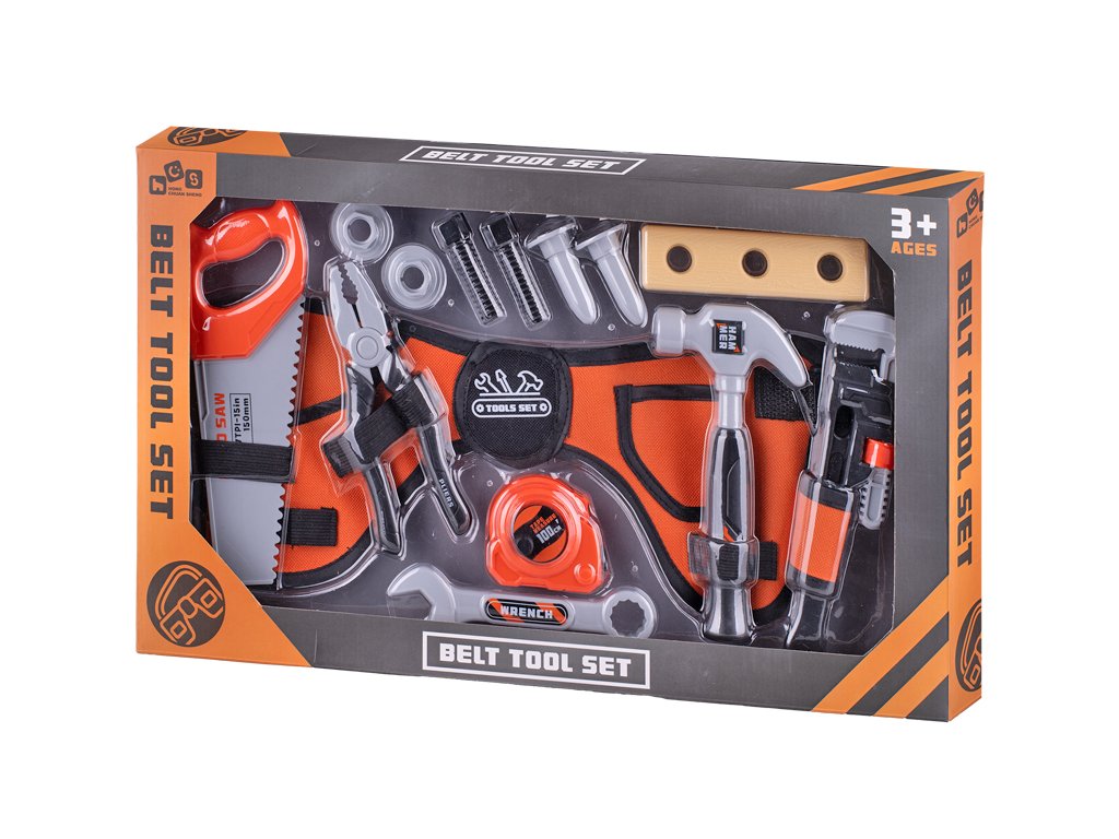 Obsah sady: 6 ks (kleště, francouzský klíč, kladívko, šroubovák, brýle, opasek)