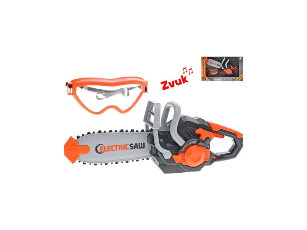 Pila elektrická 34cm na baterie se zvukem + ochranné brýle 14,5cm v krabičce