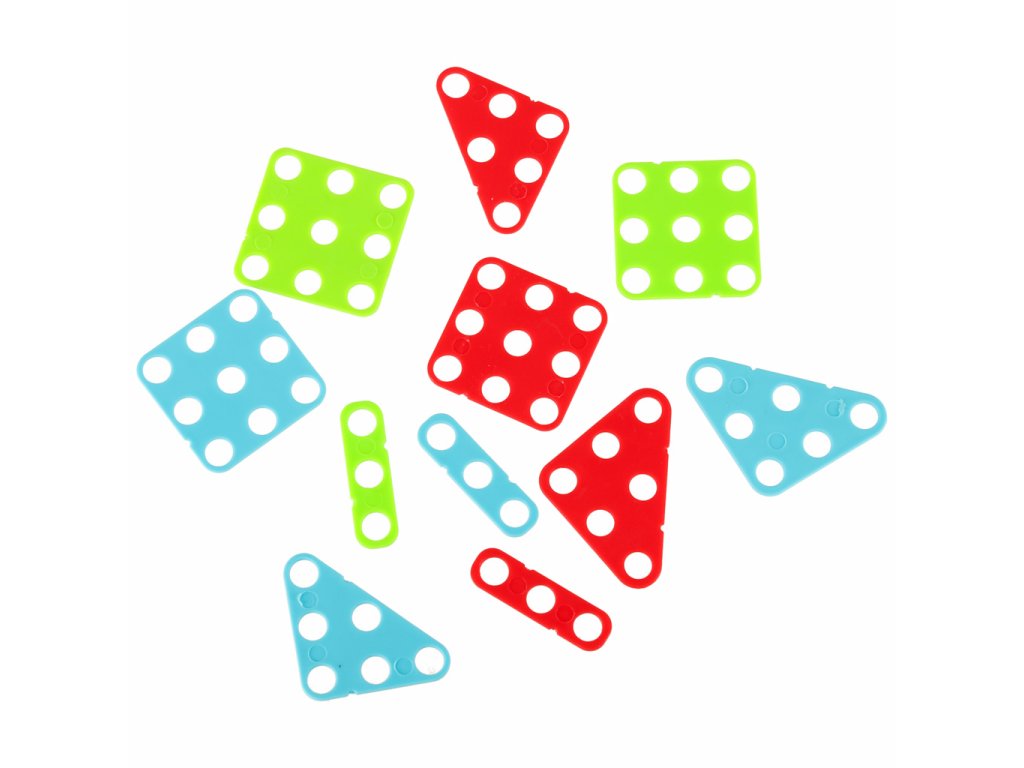 - VELKÝ POČET PRVKŮ- cihličky různých tvarů a barev podněcují dětskou představivost a umožňují stavět různé stavby.