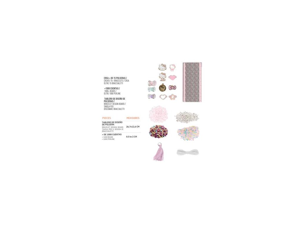 DIY sada pro výrobu náramků s motivem Hello Kitty zaujme každou kreativní dívku. Sada obsahuje vše potřebné pro výrobu originálních náramků inspirovaných oblíbenou postavičkou. Materiál: MULTICOMPOSITION. Rozměry: 13.5 × 30.0 × 4.0 CM cm. Hmotnost: 0,202 kg. Rozvíjí jemnou motoriku a kreativitu.