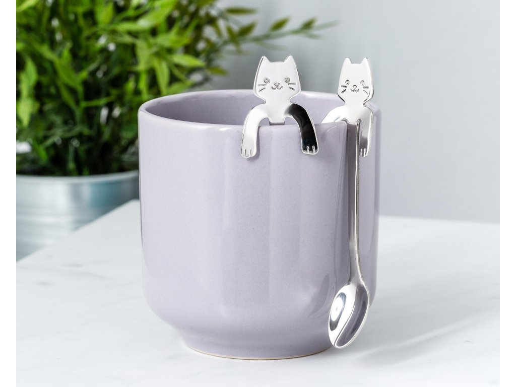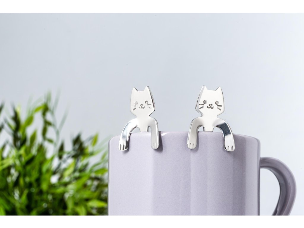 Půvabné lžičky pro přesahování na hrnek s kočičím designem.