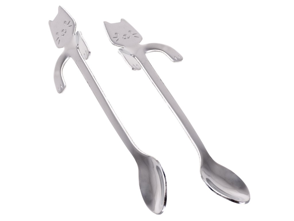 Miniaturní lžičky tvaru kočky - sada 2 ks STŘÍBRNÉ