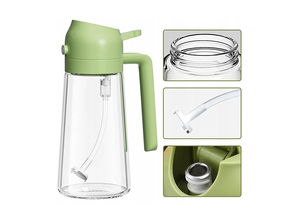 - Přesné dávkování: Umožňuje kontrolovat množství oleje nebo octa při nalévání nebo rozprašování.
