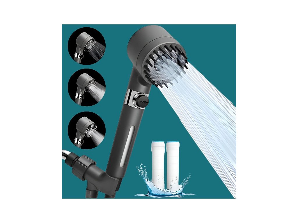 Specifikace: barva šedá, balení obsahuje 1 masážní sprchovou hlavici a 2 PP filtry.