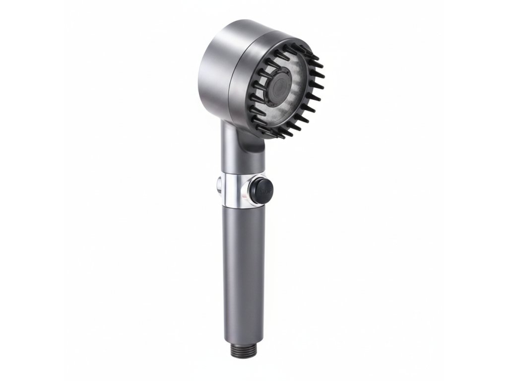 SHOWERELAX kombinuje funkčnost s elegantním designem v šedém provedení, který ladí s většinou moderních koupelen. Instalace je jednoduchá a nevyžaduje žádné speciální nářadí – stačí vyšroubovat stávající hlavici a nasadit SHOWERELAX.