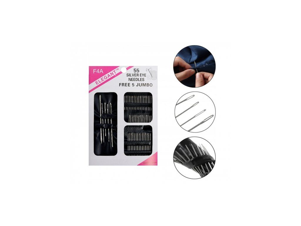 - Rozmanitost: Sada obsahuje jehly různých tlouštěk, délek a velikostí oček, což vám umožní vybrat si ideální jehlu pro každý typ látky a účel šití.