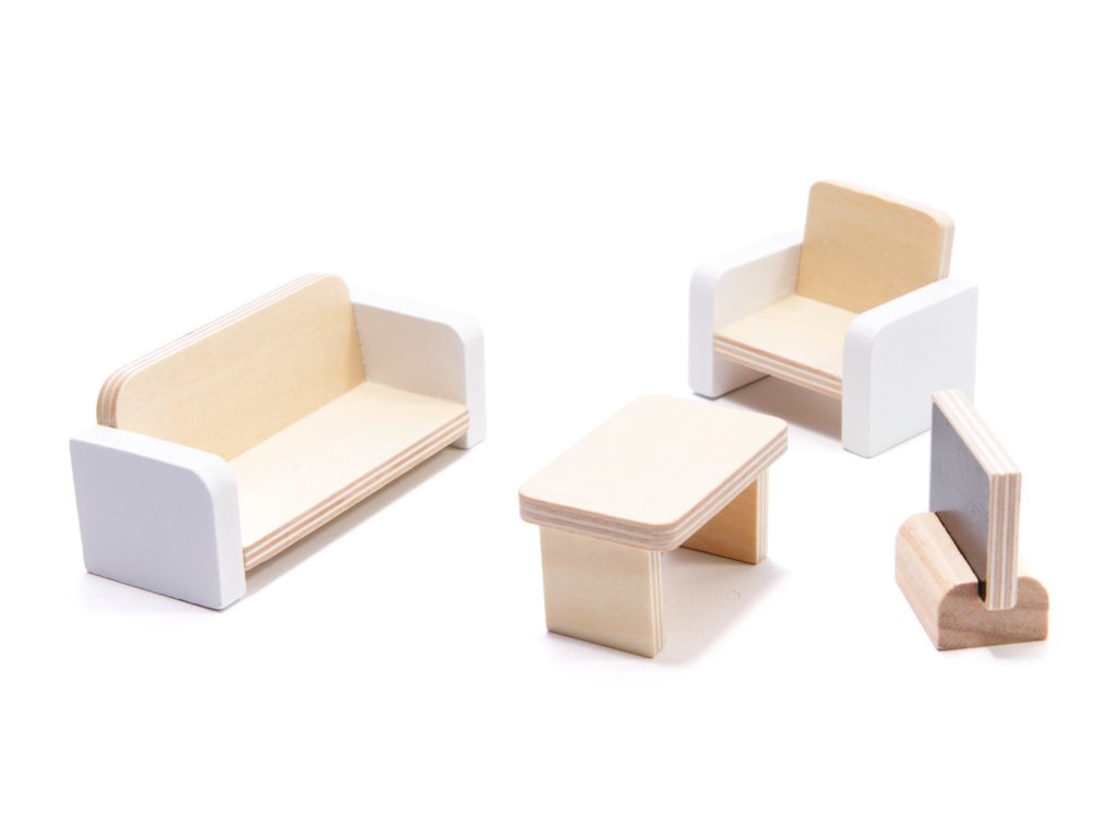 Souprava se dodává s krásným dřevěným nábytkem, který bude dokonalým doplňkem každé místnosti v domku.
