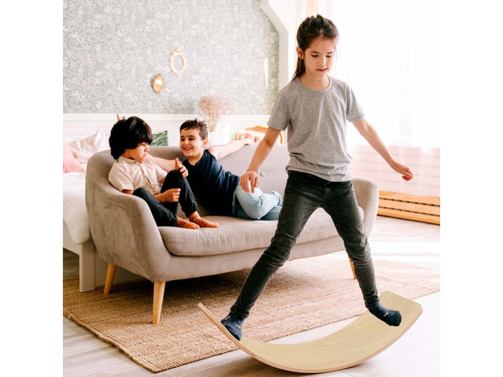 Podle zásad, které vypracovala Maria Montessori, platí, že čím jednodušší je hračka, tím lépe ovlivňuje vývoj dítěte! Není pochyb o tom, že balanční deska se k tomu dokonale hodí!