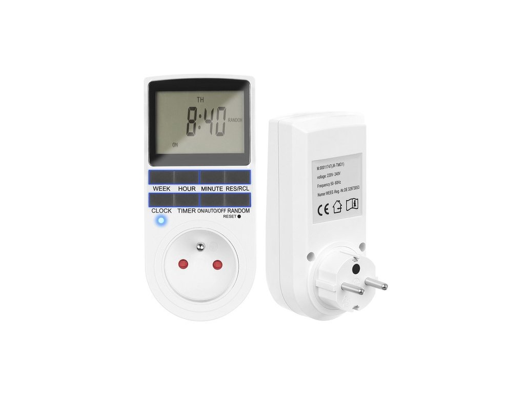 - ČASOVÝ SPÍNAČ- toto mimořádně praktické zařízení vám jeden takový umožníplnou kontrolu nad elektrickými zařízeními ve vaší domácnosti.Díky němu zautomatizujete mnoho denních činností, frna které často zapomínáte, např. při osvětlení terárií a akvárií, zhasínání lampy, vypínání topení, klimatizace nebo kotle. Můžete k němu připojit nabíječku telefonu nebo vánoční osvětlení. Programátor v předem určený čas vypne nebo vypne zařízení k němu připojené.Náš programátor má schopnost spravovat zapínací a vypínací sekvence po dobu jednoho týdne.