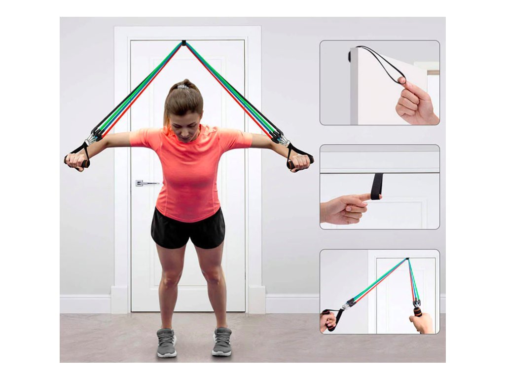 Tato 11dílná sada vám umožní nastavit si váhu od 5 do 45 kg tak, že do pěnových držadel přidáte více gum.