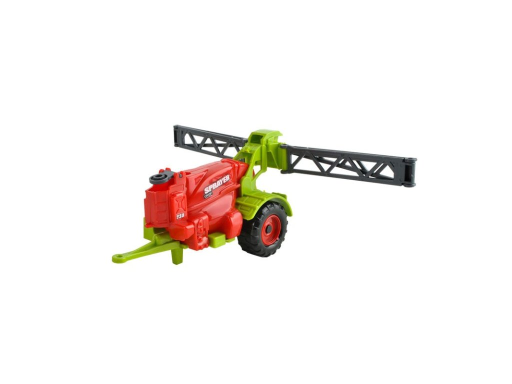 Traktory mají kovové tělo a realistické reprodukovány detaily jednotlivých částí. Uvnitř kabiny řidiče můžete vidět detaily sloupku řízení, rozšířený panel ovládající činnost traktoru a stroje, které jsou k němu připojeny. Na vnější straně výfukový systém s komínem, schodištěm a západkou zachytí oko. Dvounápravový přívěs na přepravu zvířat má otevíratelný zadní poklop, který také slouží jako můstek. Dvounápravový sklápěcí přívěs je mobilní, plovoucí nákladní prostor s přídavným zadním hatchbackem. Slámové nebo seno-balíky jsou také vybaveny dvěma osami a detailně je možné vidět konstrukci podsestav. Zadní strana tohoto zařízení je také otevřená. Postřikovač má jednu nápravu umístěnou na velkých kolech. Kromě toho je vybaven dvěma rameny, které se rozkládají ve dvou fázích, jakož i do pohyblivých chlopní infuze rozprašované látky. Všechny zemědělské stroje mají červené ráfky a černé, plastové kola s vysokým dezénem. Na pouzdrech zemědělských zařízení jsou speciální značky, které imitují značky a modely. Každý stroj může být navzájem zaměnitelný s každým z traktorů. Připojovací mechanismus vyžaduje pouze mírné vychýlení háku dolů. Hračky jsou vhodné pro vnitřní i vnější hru. Dětí se budou hrát v pískovišti, na zahradě trávníku nebo na balkoně nebo terase atraktivní. Soubor zemědělských strojů - farma bude skvělým darem pro každého malého nadšence zemědělské práce. Atraktivní barvy vypadají skvěle na poličce jako sběratelský model.
