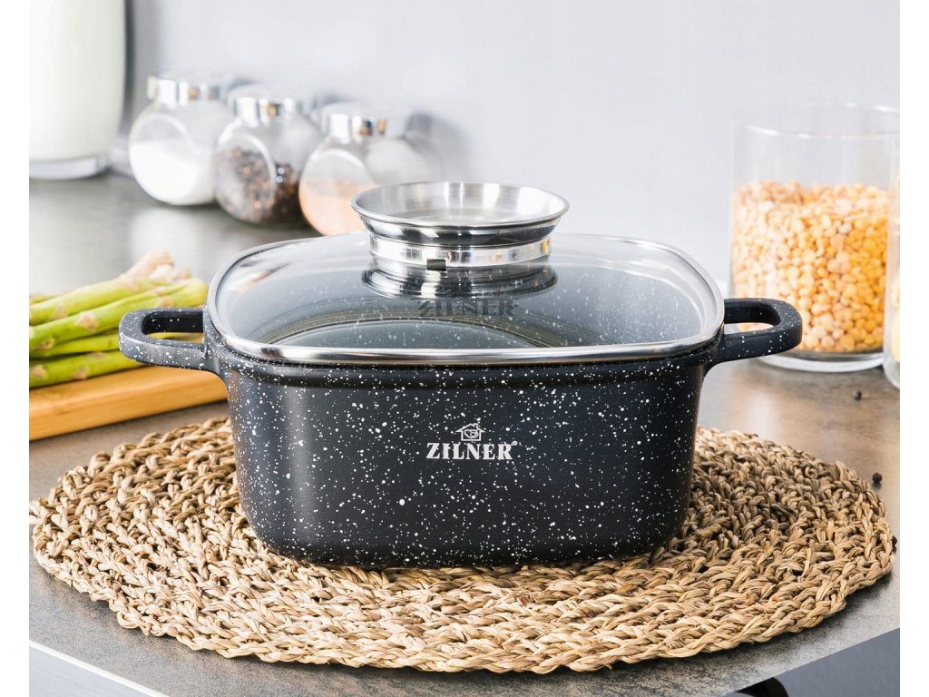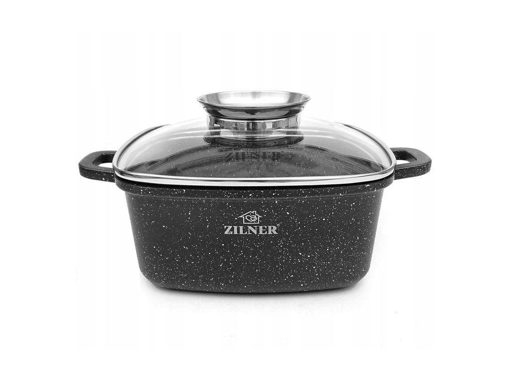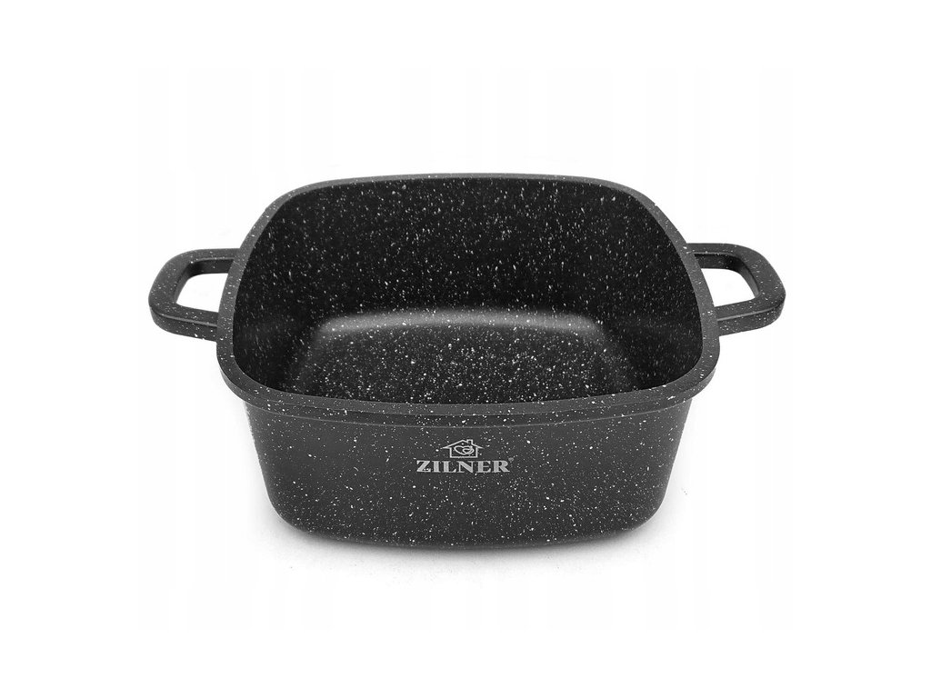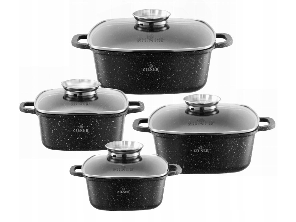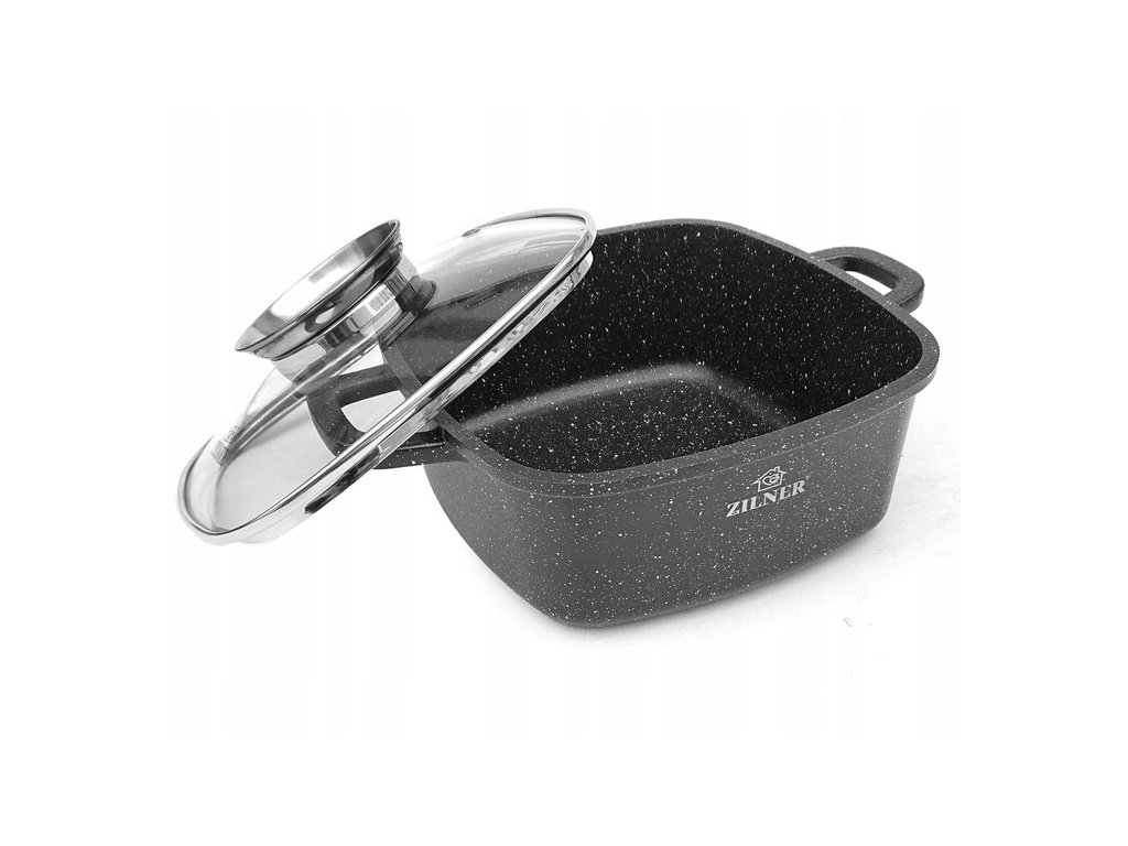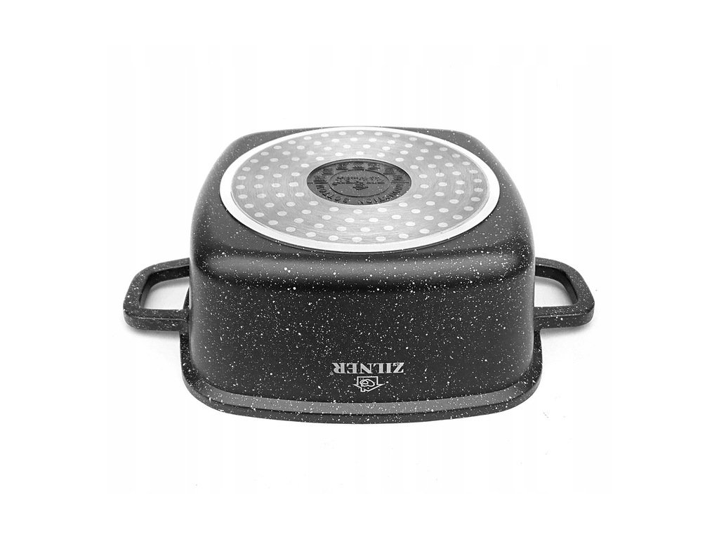 Sada 4 hranatých pekáčů s mramorovým nepřilnavým povrchem nabízí široké využití v každé kuchyni. Vyrobené z kvalitního litého hliníku, který zajišťuje odolnost proti korozi a rychlé, rovnoměrné rozložení tepla. Pekáče mají indukční feromagnetické dno, takže je lze používat na všech typech sporáků včetně indukčních.
