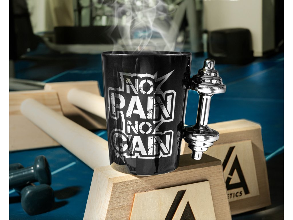 Pokud hledáte dárek pro někoho, kdo rád cvičí a tráví čas v posilovně nebo venku, náš hrnek s uchem ve tvaru činky bude skvělou volbou. Hrnek nese motivační slogan "No pain, no gain," což je oblíbené heslo všech, kteří se neobejdou bez námahy a odhodlání. S kapacitou 350 ml je ideální na jakýkoli nápoj, který vás povzbudí k dalšímu tréninku.
