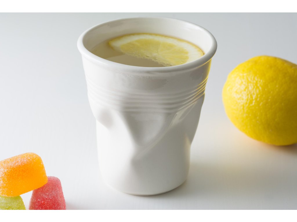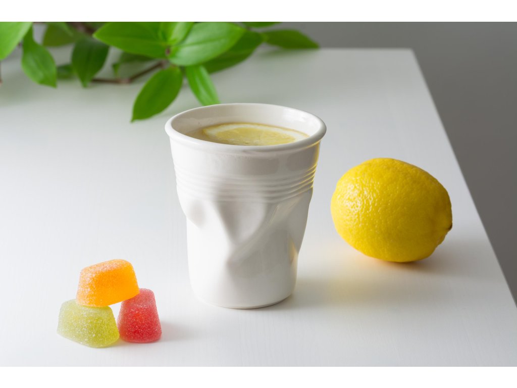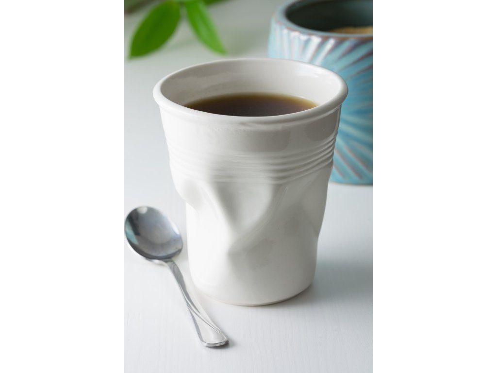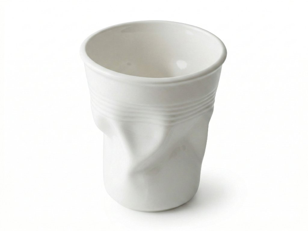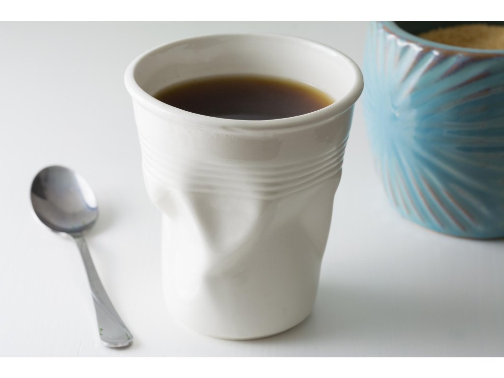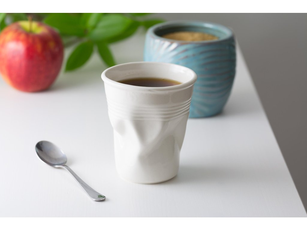Na první pohled vypadá jako levný jednorázový kelímek. Zmačkaný, obyčejný, nic zvláštního. Ale jakmile se ho dotknete, zjistíte, že je vyroben z kvalitní porcelány. Pak začíná překvapení a smích.