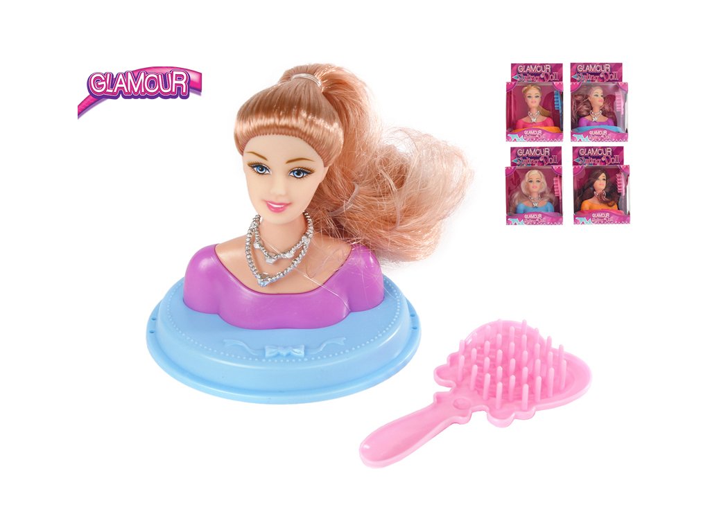Glamour česací hlava 9cm s doplňky 4druhy v krabičce