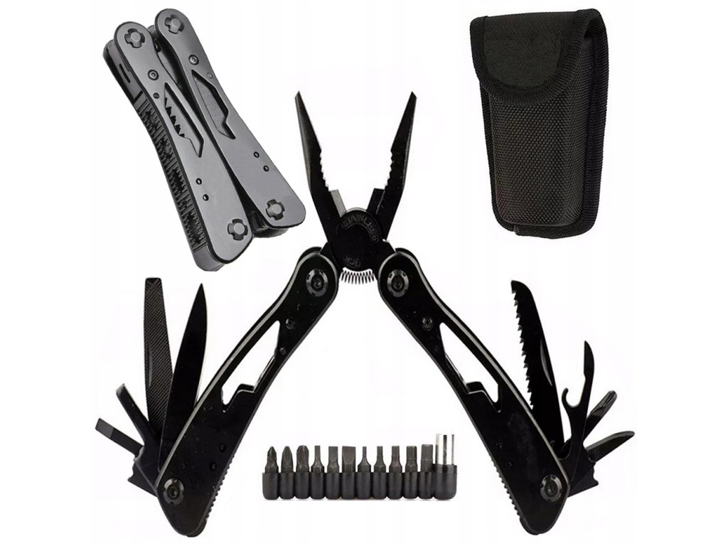Nástroj, který kombinuje kleště, kapesní nůž, šroubováky, otvírák a další nástroje - celkem až s 20ti funkcemi. Je to cestovní nástroj, ale hodí se i pro každodenní použití. Lze s ním otevřít láhev, odstranit šroubek, odizolovat kabel nebo dokonce opilovat nehty. Lze jej použít v široké škále aplikací a je vždy po ruce.
