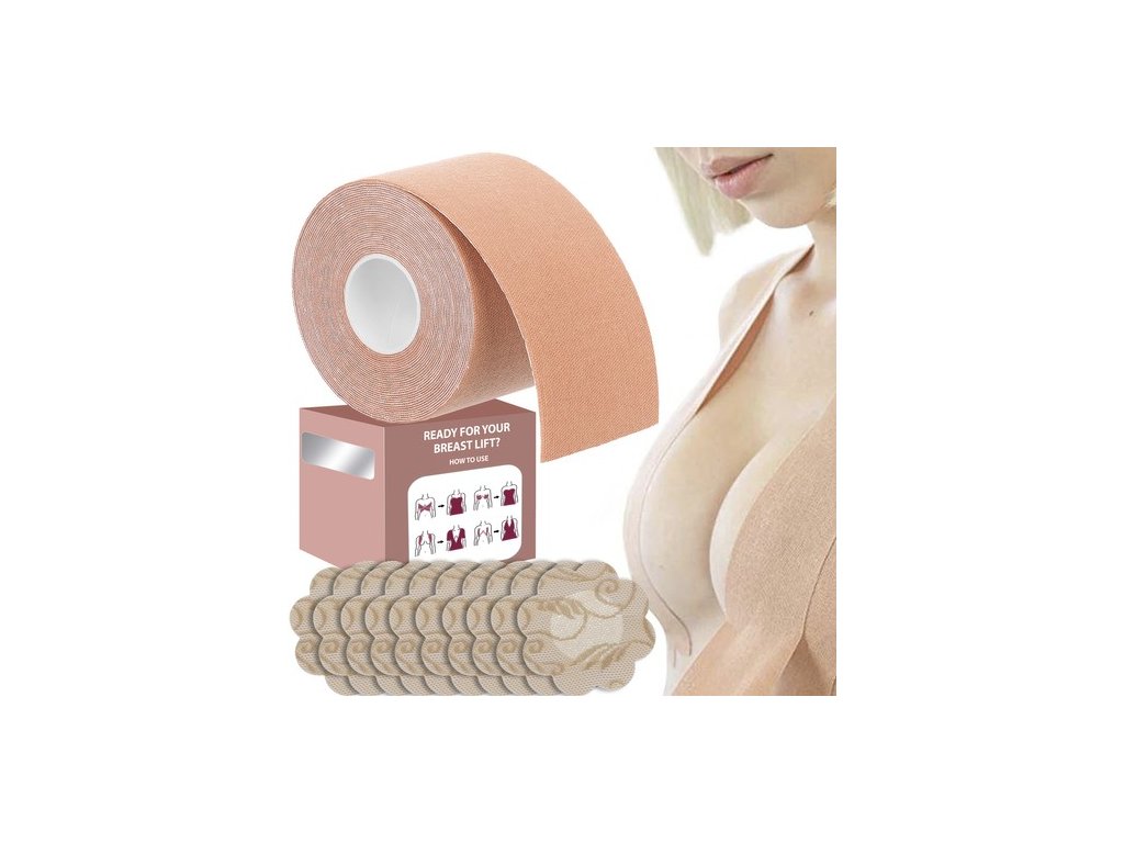 PÁSKA NA ZVEDÁNÍ POPRSÍ / PODPOR TENTO ZÁVĚS PRO TVAROVÁNÍ PRSÍ - Tato mimořádně praktická vychytávka vám umožní bez rozpaků nosit šaty, halenky nebo kostýmky s hlubokým výstřihem a bez zad – bez nošení tradičních podprsenek, které v tomto stylu nevypadají esteticky. Jedna role je až 5 metrů extrémně silné pásky s permanentním lepidlem. Sada obsahuje také krajkové návleky na bradavky , které vám umožní chránit jemnou pokožku na bradavkách před podrážděním. Páska a _ vyrobeno z extrémně odolného a prodyšného materiálu což je nylon a spandex, který má natahovací vlastnosti. UNIVERZÁLNÍ - vždy jste se báli oblečení s hlubokým výstřihem nebo otevřenými zády kvůli velikosti vašich prsou? Nyní se nemusíte bát, že by vaše prsa byla příliš malá nebo příliš velká. Páska snadno dá tvar malému poprsí a udrží ňadra ve větších velikostech. Pásky mají extrémně silné lepidlo, které bude fungovat i v těch nejextrémnějších situacích. Díky tomuto gadgetu můžete nosit Všechno oblečení bez omezení. VYSOKÁ KVALITA - Páska je vyrobena z extrémně odolného a zároveň příjemného na dotek nylonu s příměsí spandexu. Je odolný, pevný a hlavně se nedrolí pod oblečením a je voděodolný což znamená, že tento roztok můžete používat, i když víte, že se vaše pokožka bude intenzivně potit. Vydrží i ty nejšílenější, extrémní výjezdy! Materiál je snadno tvárný až do 180% což znamená, že jeho spotřeba je nízká, ale účinky jsou obrovské! JAK POUŽÍVAT - kousky o maximální délce 20 cm by měly být aplikovány na suchou, čistou pokožku, bez pleťových vod a krémů, protože to oslabuje účinek lepidla. Pásek je voděodolný, takže poprsí vymodelujete i do plavek. Je při nošení neznatelný , nemusíte se bát jej neustále vylepšovat. Před nasazením pásky nezapomeňte nosit ochranné kryty bradavek! SPECIFIKACE - béžová barva; materiál: nylon a spandex; rozměry (délka / šířka): 500 / 5cm; hmotnost: 0,09 kg; hmotnost v balení: 0,1 kg. SPECIFIKACE béžová barva; materiál: nylon a spandex; rozměry (délka / šířka): 500 / 5cm; hmotnost: 0,09 kg; hmotnost v balení: 0,1 kg. ZAHRNUTA páska ochranné krytky na bradavky 10 ks