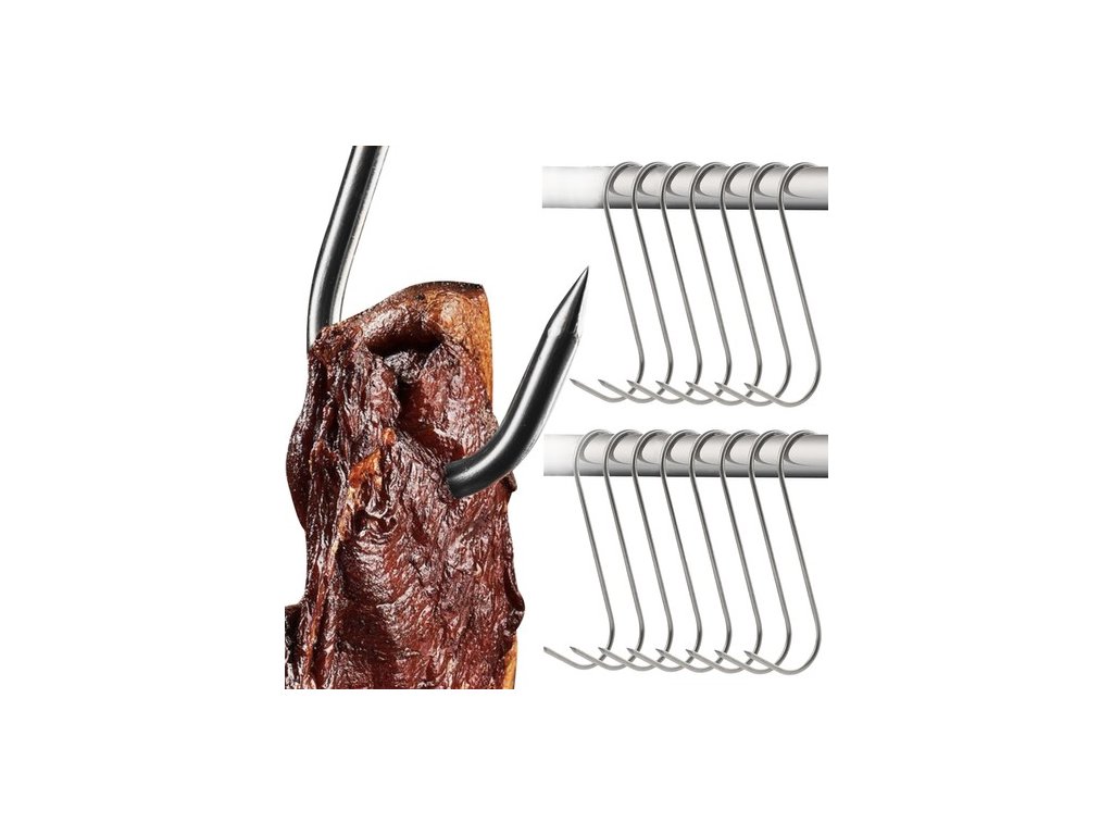 Silné udící háčky na maso ve tvaru "S" jsou perfektní nástroj pro každého, kdo se věnuje domácí přípravě uzenin a ryb. Tato sada obsahuje 15 háčků vyrobených z kvalitní nerezové oceli, která zajišťuje vysokou odolnost vůči teplotám a váze masa v udírně. Díky ostrým koncům háčků je možné snadno a bezpečně zavěsit maso nebo ryby do udírny.