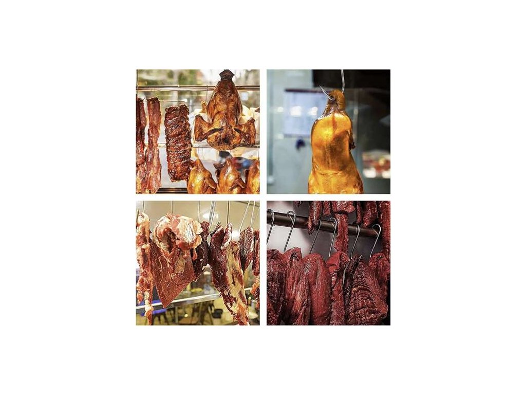 Sada obsahuje 15 háčků, což vám umožní připravit velké množství uzenin najednou, čímž šetříte čas a zvyšujete efektivitu přípravy. Tyto háčky jsou ideální pro všechny typy masa, od menších uzenin až po velké kusy, jako jsou šunky nebo ryby.