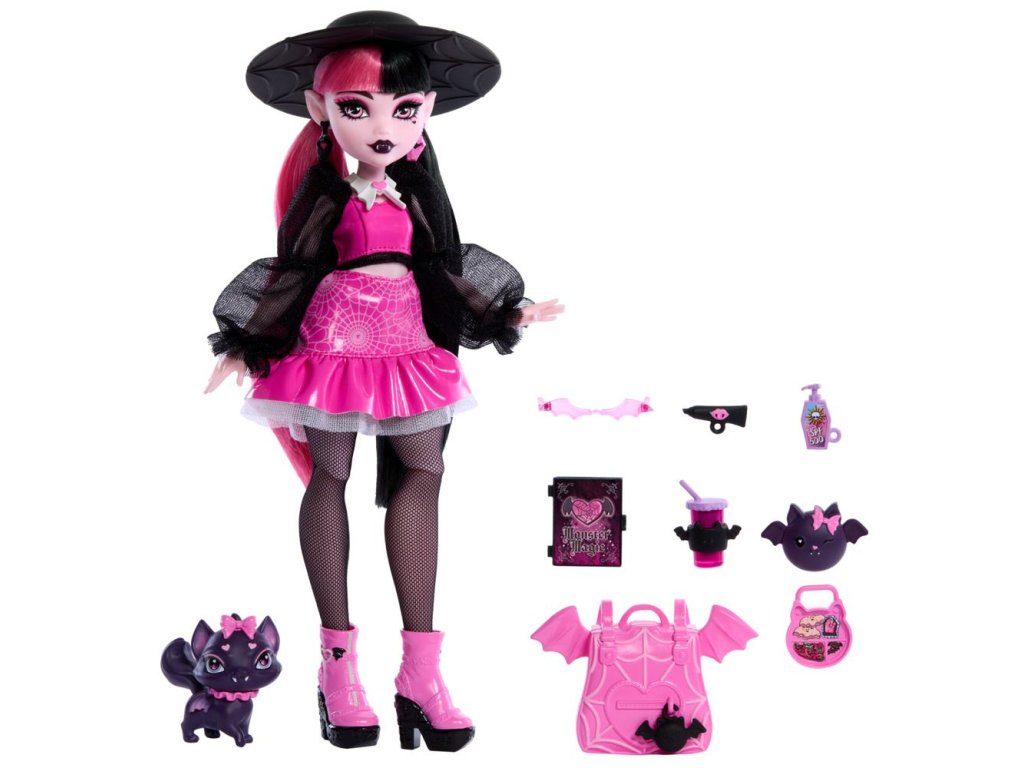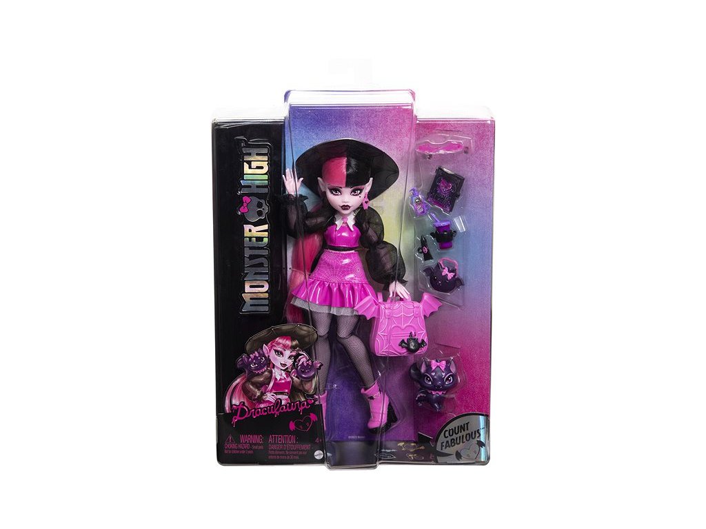 Objev svět Monster High s panenkou Draculaura, která miluje módu a trendy doplňky. Tato ikonická postava z oblíbené série Monster High má dlouhé vlasy, pohyblivé klouby a stylový outfit, díky kterému si ji děti okamžitě zamilují.