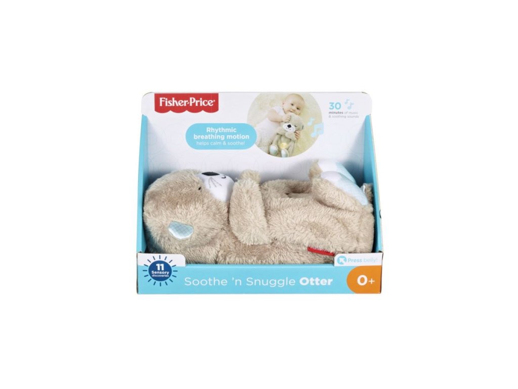 Uspávejte své miminko snadno a rychle se Zklidňující vydrou s melodiemi Fisher-Price, která se stane ideálním kamarádem na spaní. Hebká plyšová hračka příjemně svítí na bříšku, vydává jemné zvuky, včetně bílého šumu, a hraje až 30 minut relaxační hudby. Díky tomu pomáhá dětem klidně usnout a dodává jim pocit bezpečí jak doma, tak i na cestách. Vydra je vhodná již pro novorozence.