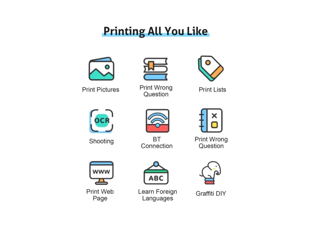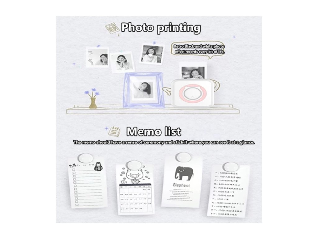 Vhodná pro všechny chytré telefony! Tuto mini tiskárnu lze připojit k jakémukoli chytrému telefonu, který je dnes na trhu! K ovládání fototiskárny si stačí stáhnout aplikaci, ve které můžete zároveň fotografie upravovat.