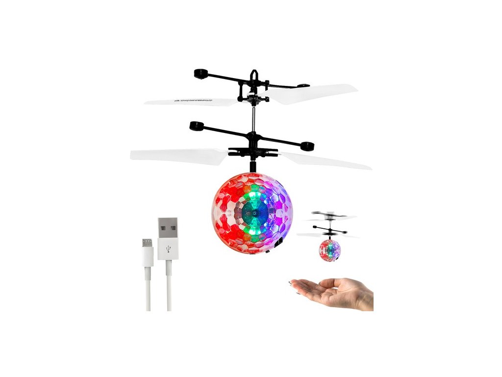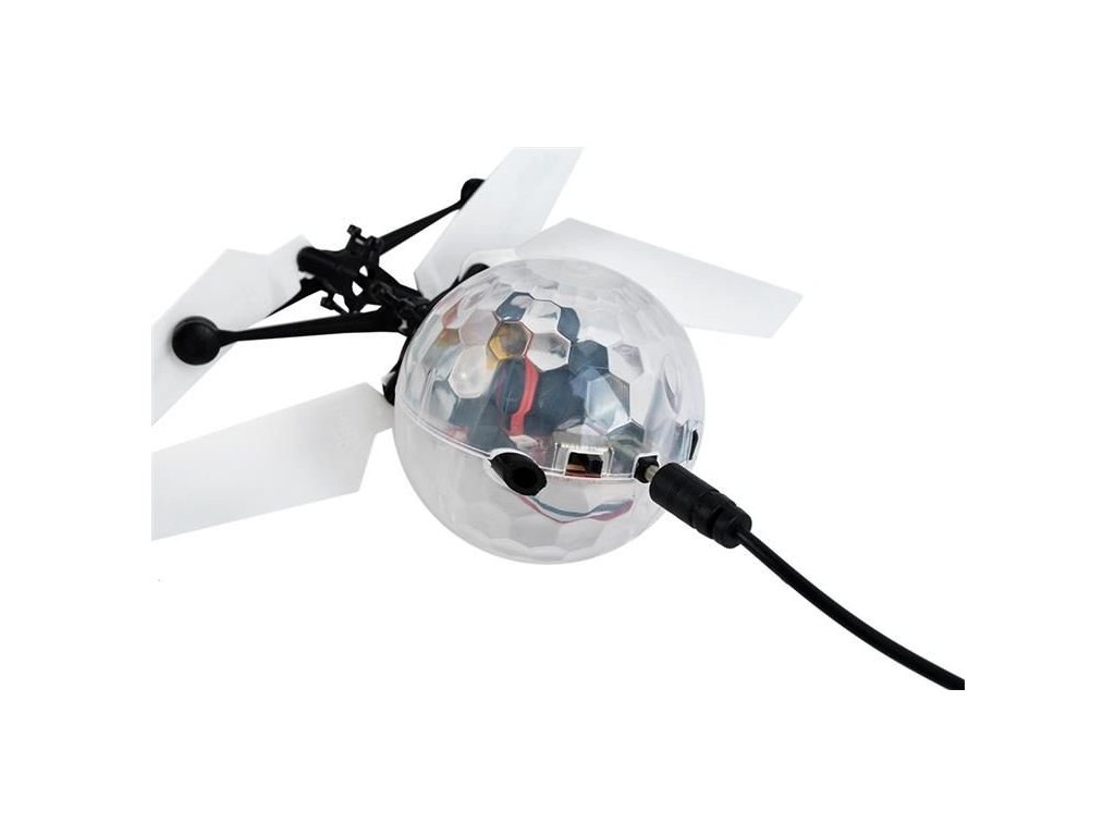 LÉTAJÍCÍ DISCO KOULE LET AUTOMATICKY – uvnitř koule je mechanismus, venku jsou 4 vrtule a dole je malý spínač, který je uvádí do pohybu a díky tomu se hračka může sama vzlétnout; křídla jsou flexibilní, ale zároveň dostatečně odolná, aby hračku snadno zvedla do vzduchu.