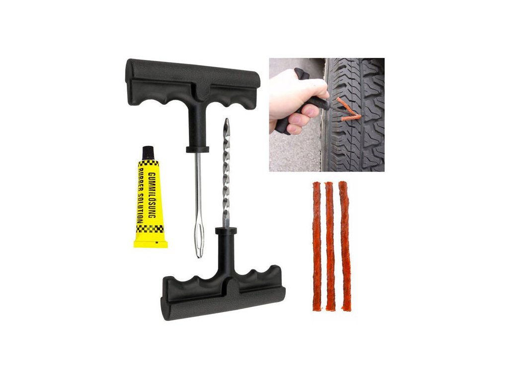 Sada na rychlou opravu bezdušových pneumatik bez nutnosti demontáže pláště z disku. Tato sada je vhodná jak pro automobily, tak pro motocykly, čtyřkolky a další bezdušové pneumatiky.