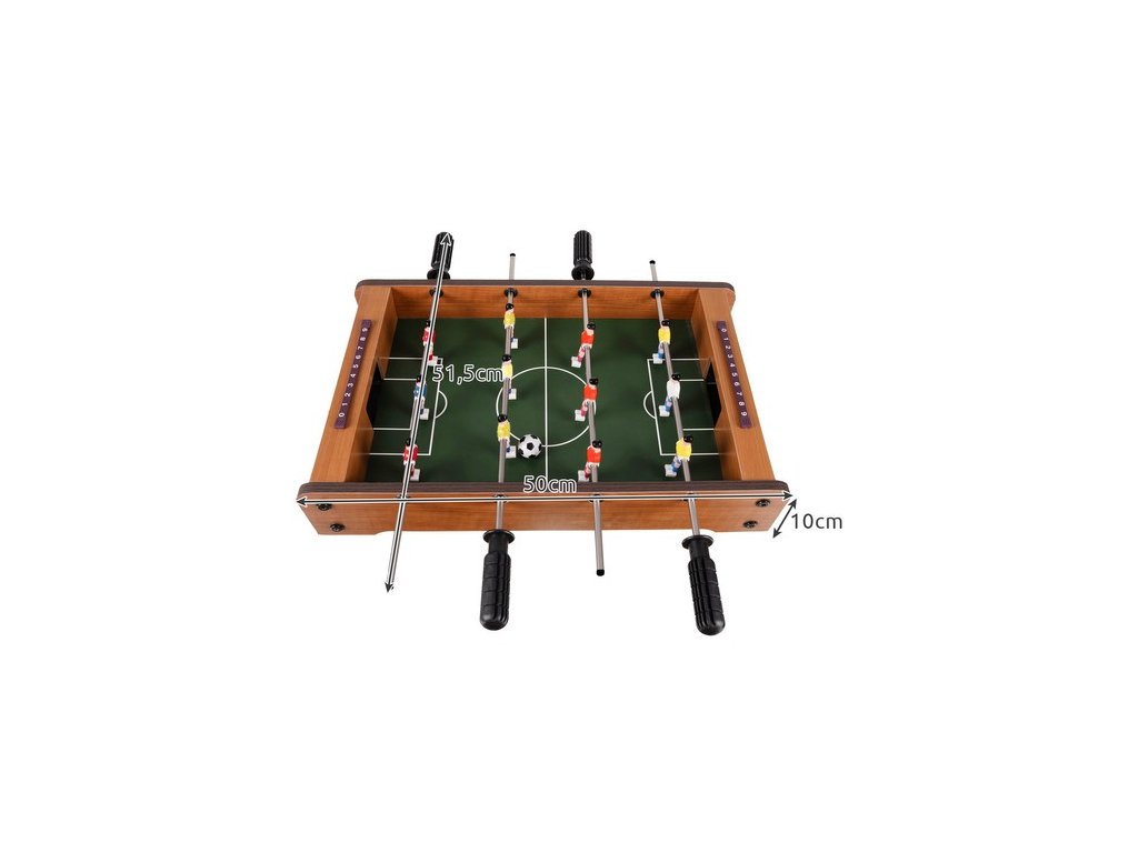 Mini stolní fotbal je vzrušující hra, která propojuje generace a poskytuje hodiny zábavy pro děti, teenagery i dospělé. Stolní fotbal má kompaktní rozměry, ale nabízí plnohodnotný zážitek z této klasické hry. Branky jsou umístěny na obou stranách stolu a zajištěny stabilními zátkami, takže i při emocionálních zápasech zůstává stůl pevný a stabilní.