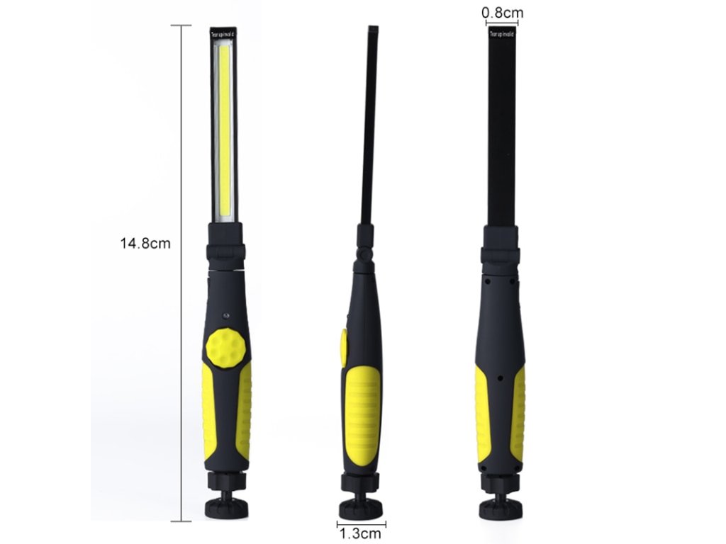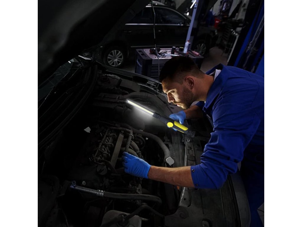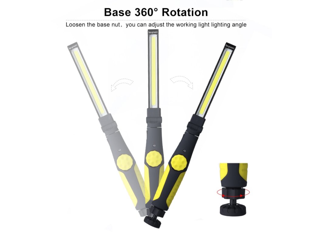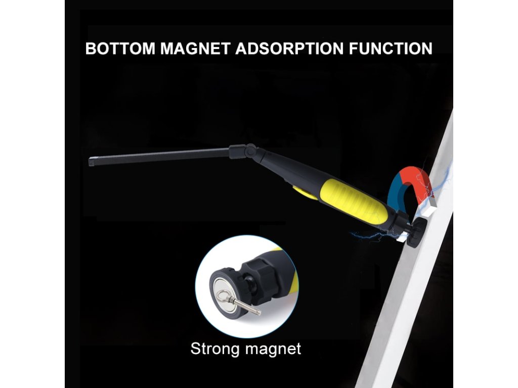 Přenosné pracovní světlo s magnetem BL-W55 vybavené nabíjecím kabelem USB, díky kterému můžete světlo kdykoliv nabít. Světlo je dále vybaveno speciální magnetovou základnou a výkonným magnetem, který je dostatečně silný, aby se připevnil na všechny kovové povrchy. Je to velmi užitečné, když potřebujete mít obě ruce volné. Tato svítilna má vestavěný vysoce svítivý LED panel, tvořený 25ks led diod, uspořádaných do světelného pásu. Lampa poskytuje 100-700 lumenů jasu, lze nastavit podle potřeby od nízkého jasu po vysoký jas pomocí kulatého tlačítka. Otočná základna o 360° vám dává větší možnost při výběru vhodného úhlu osvětlení. Pracovní lampa je vhodná pro vnitřní i venkovní aktivity, např. použití v domácnosti, opravy automobilů, venkovní táboření. Tuto LED pracovní lampu lze použít také pro procházky se psem, turistiku, lov atd