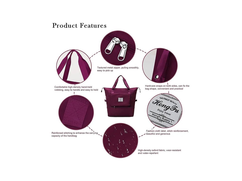 Cestovní skládací taška s velkým úložným prostorem - vínová