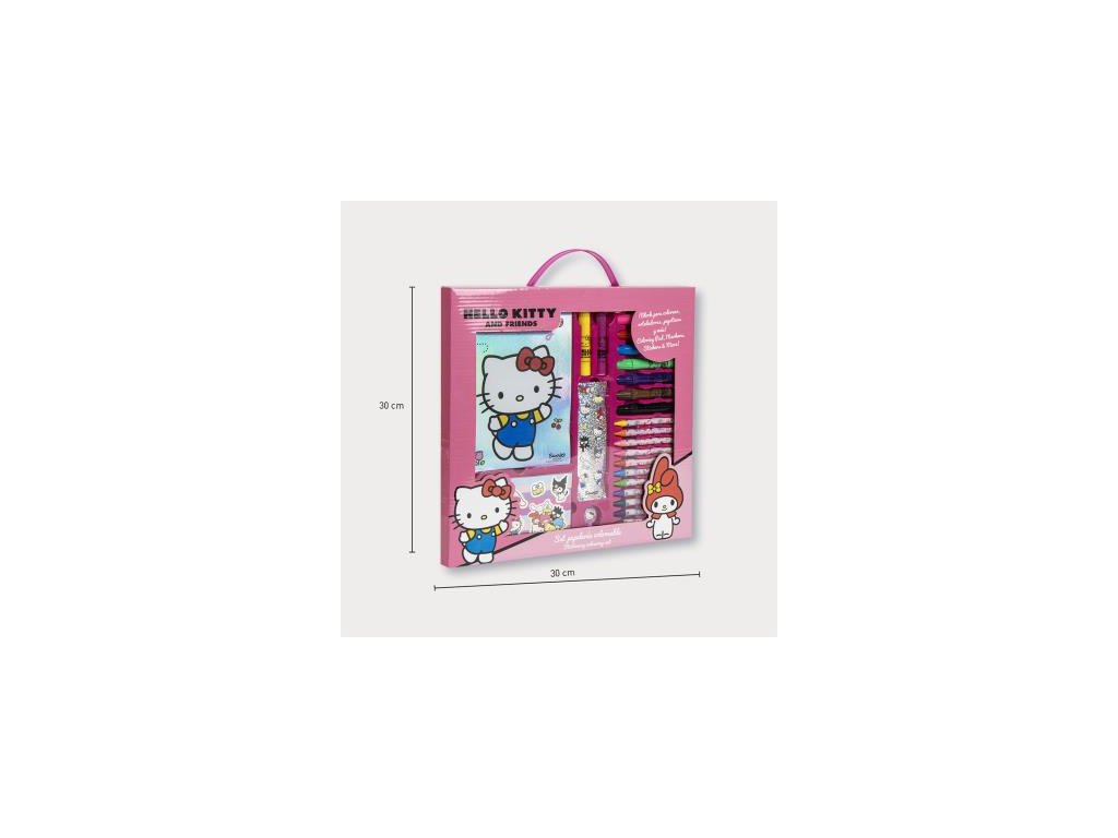 Omalovánková sada s motivem Hello Kitty je kreativní zábavou pro každé dítě. Display formát zajišťuje přehledné uspořádání všech pomůcek. Materiál: MULTICOMPOSITION. Rozměry: 30.0 × 30.0 × 2.5 CM cm. Hmotnost: 0,375 kg. Vhodné pro děti předškolního a školního věku. Rozvíjí kreativitu a jemnou motoriku.