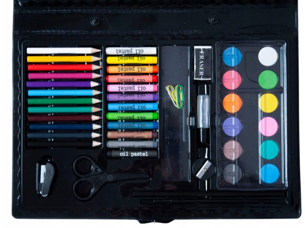 Výtvarná sada, ve které najdete všechny potřebné pomůcky k malování a kreslení pěkně pohromadě v praktickém kufříku.